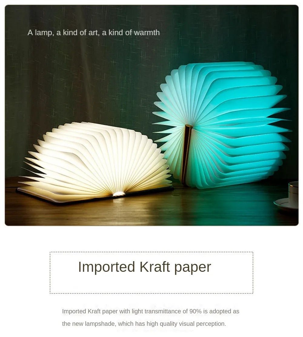 Book-Like Design: The Book Lamp features a novel book-shaped design, unfolding to create a beautiful ambient light. When closed, it's a stylish book; when open, it's a radiant lamp.