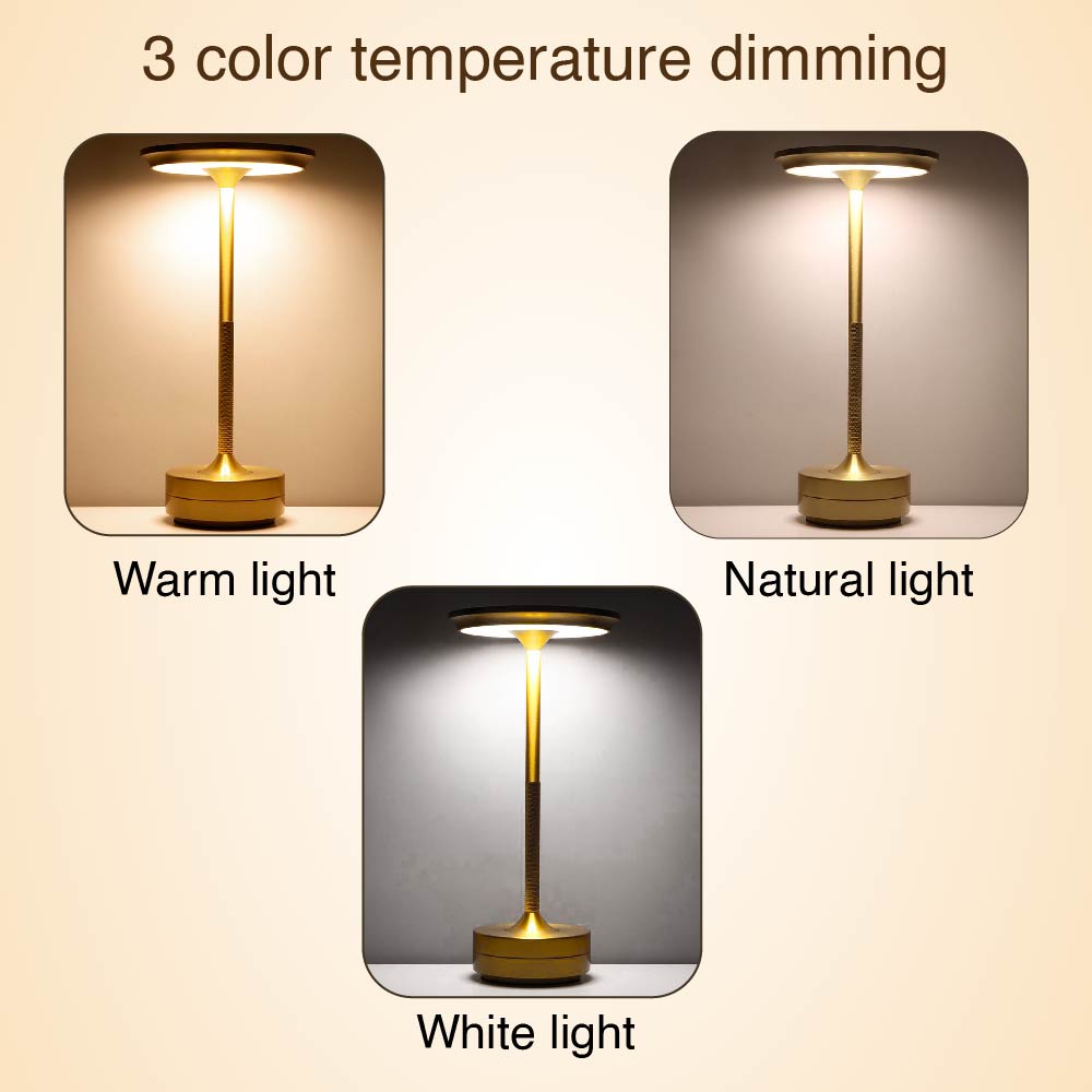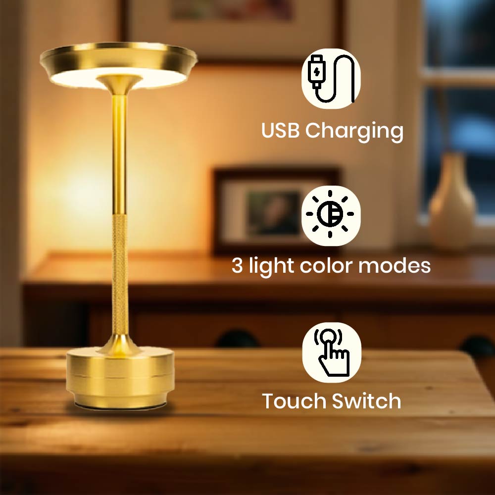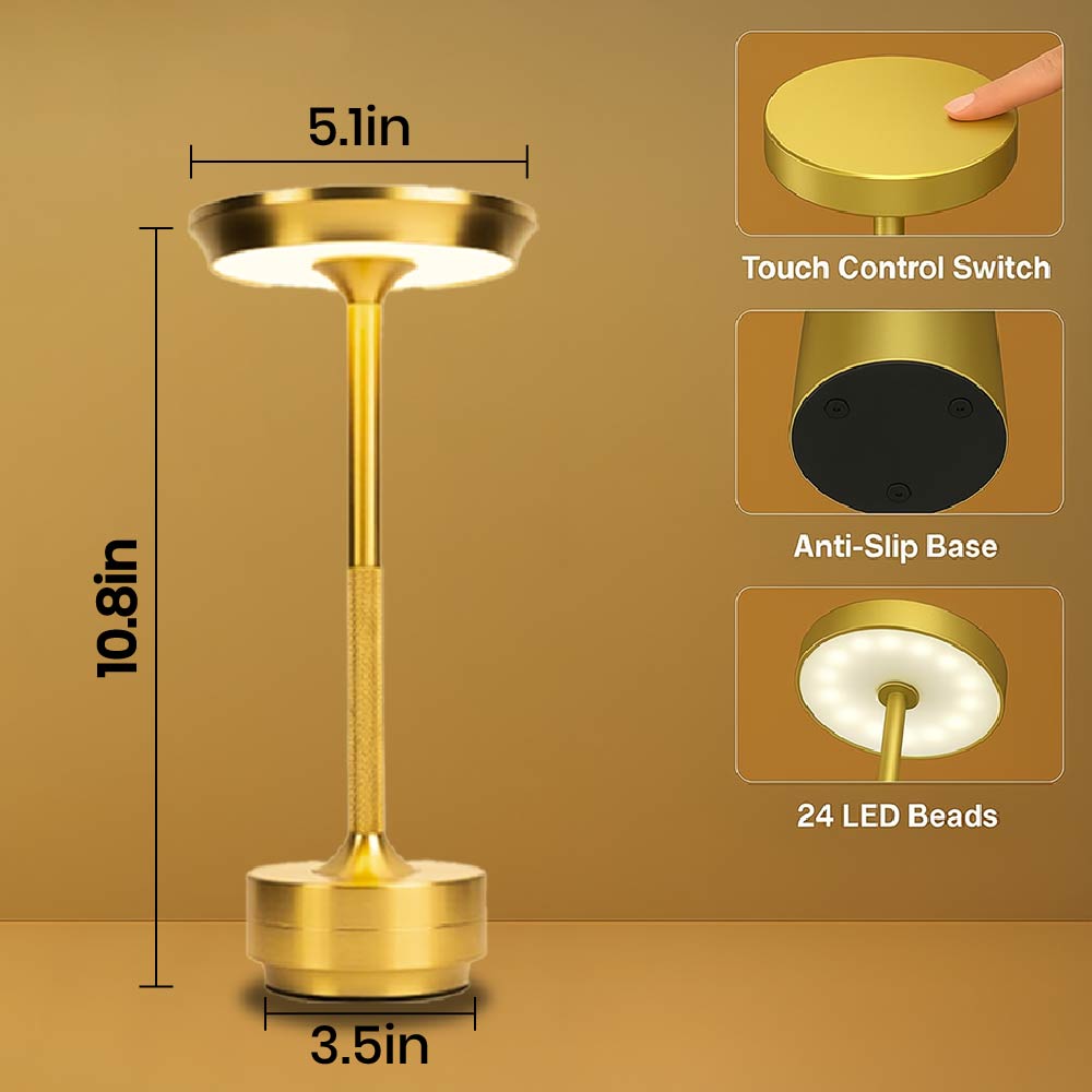 Cordless LED Table Lamp (Gold) - USB Rechargeable Portable Touch Control