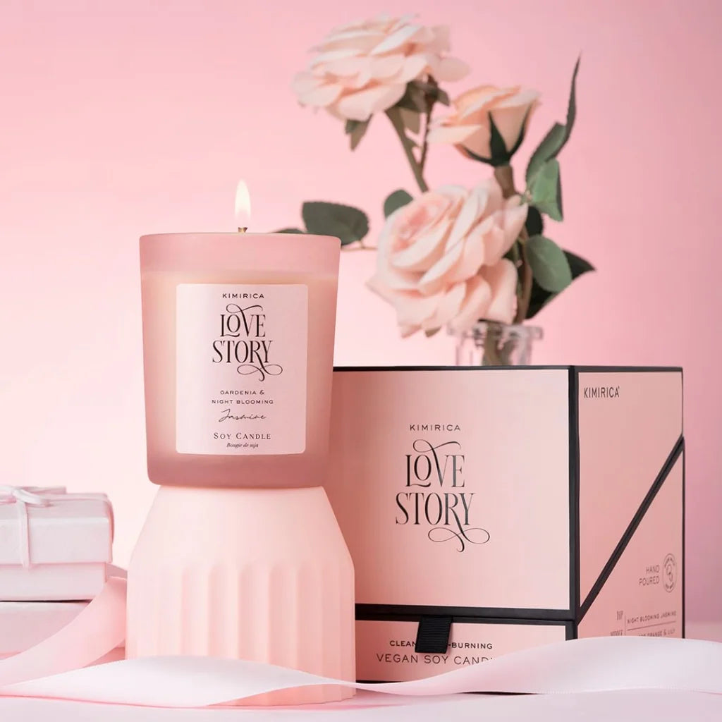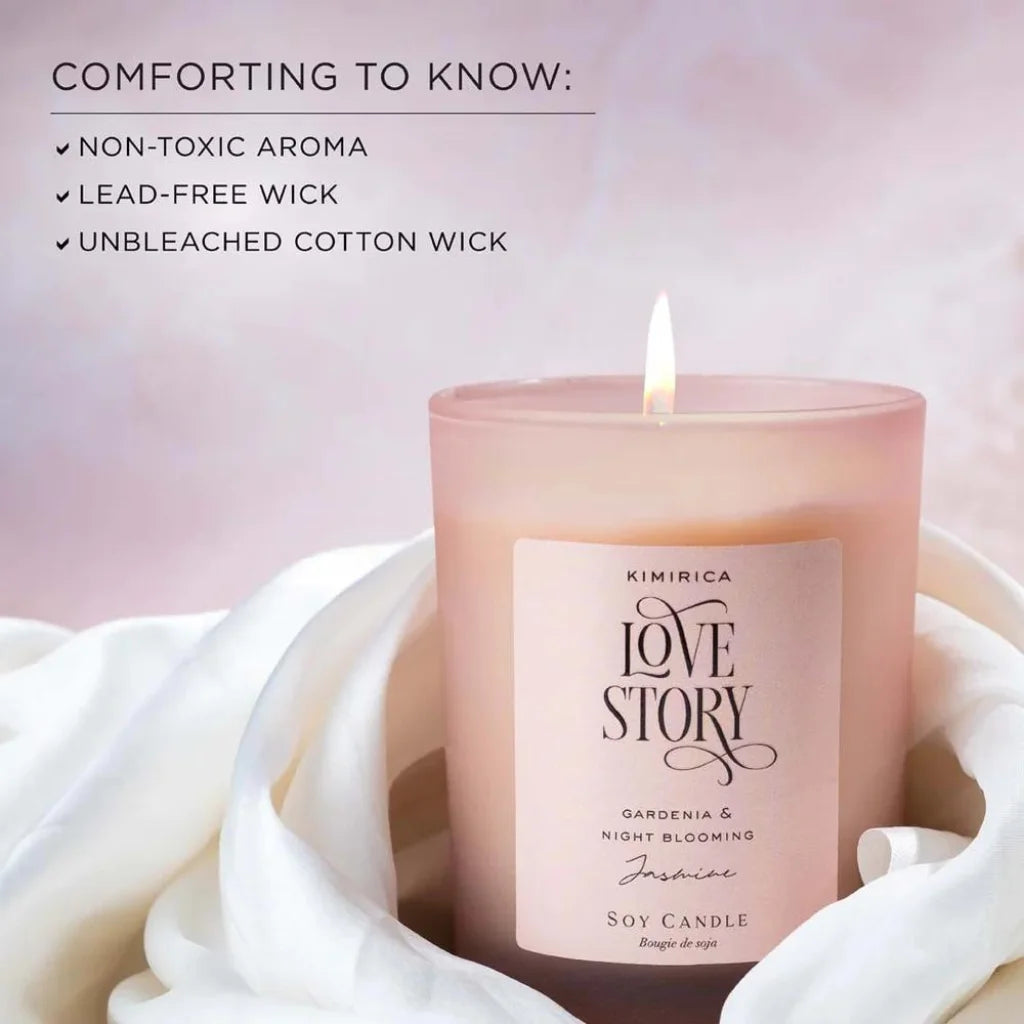 Unleash the magic of love with the Kimirica Love Story Candle. Made with 100% natural Soy Wax and featuring the captivating scents of Gardenia and Night Blooming Jasmine, this candle is a true delight for the senses. Housed in a luxurious gift box, it is the perfect way to show someone you care.