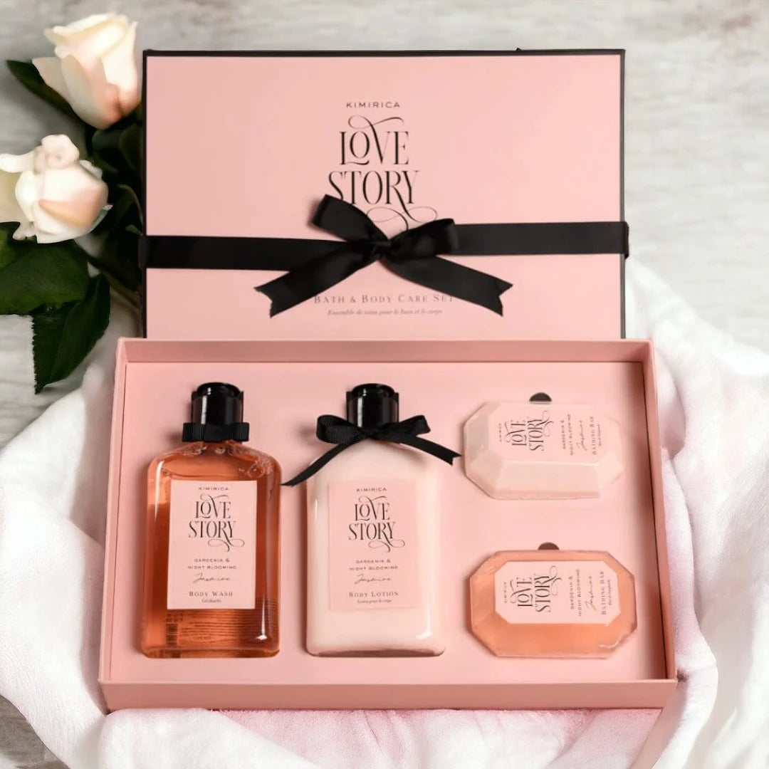Make their hearts skip a beat with the KIMIRICA Love Story Gift Set. This enchanting box of goodies features a hydrating body wash, nourishing body lotion, and two handcrafted bathing bars. Whether its for a special occasion or just to say I adore you, this gift set is sure to leave a lasting impression. Romance has never smelled so good.