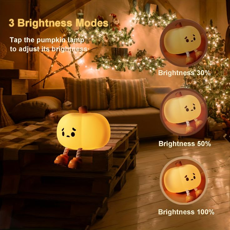 - 【 Pumpkin Lamp 】: With cute Pumpkin shape and warm light, kids will more easily fall asleep while playing. you can tap the top to adjust the brightness of night lights in the weak, medium and strong third gear and finally turned off.
