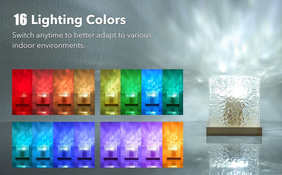 Our water ripple night light features 16 colorful color transitions, each of which can bring you a different experience. It can create a dreamy atmosphere for your bedroom, making your night more warm and romantic.