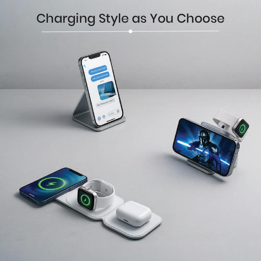 3-in-1 Magnetic Wireless Charging Station for iPhone 12-16, Air pds 2/3/Pro, Watch, Android, Qi-Enabled Devices, Foldable