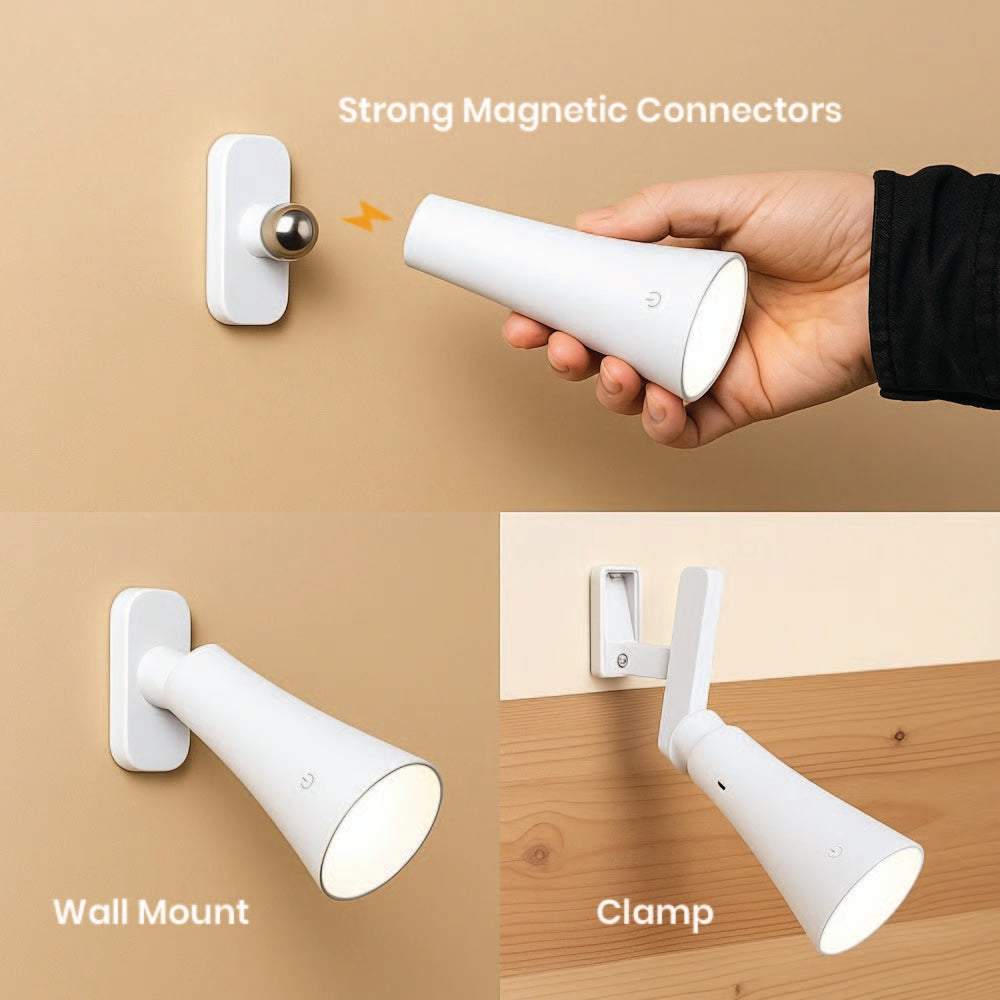 Welcome to a world of seriously smart night lights. A 360° adjustable head, you can customize it to any of your needs, be it working late, reading in bed, or sneaking a midnight snack. Use the magnetic ball mount to detach and reattach in seconds with ease. You can stick it on a wall, clip it onto a desk, or prop it up with the included bracket, it’s made to fit your space and your lifestyle. Plus, it doubles as a portable flashlight for those just-in-case moments.